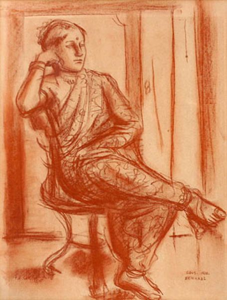 Woman in a sari sitting