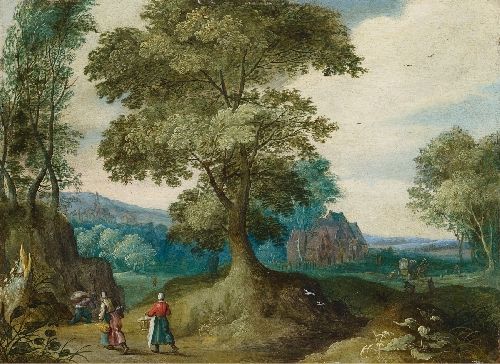 WOODED LANDSCAPE WITH FIGURAL STAFFAGE