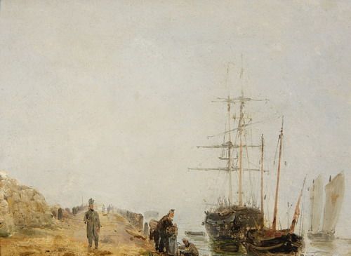 SAILING SHIPS BY A JETTY