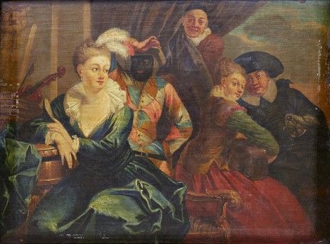Maskerad - interiör med Commedia dell’arte-figurer