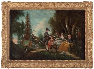 | Musizierende Gesellschaft mit Zierbrunnen im Schlossgarten | |