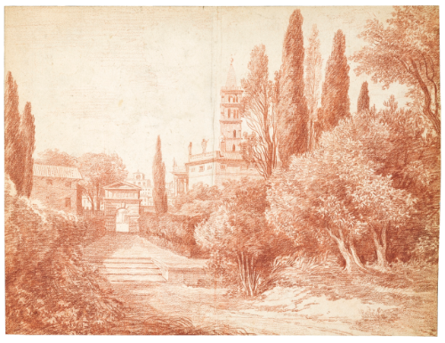 | ROMAN VIEW WITH S. MARIA MAGGIORE SEEN FROM THE GARDENS OF THE VILLA MONTALTO | |