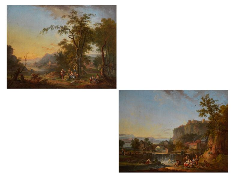 PAAR LANDSCHAFTEN MIT FIGUREN, FLUSS UND STADTANSICHT