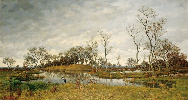 Paysage de marais au héron