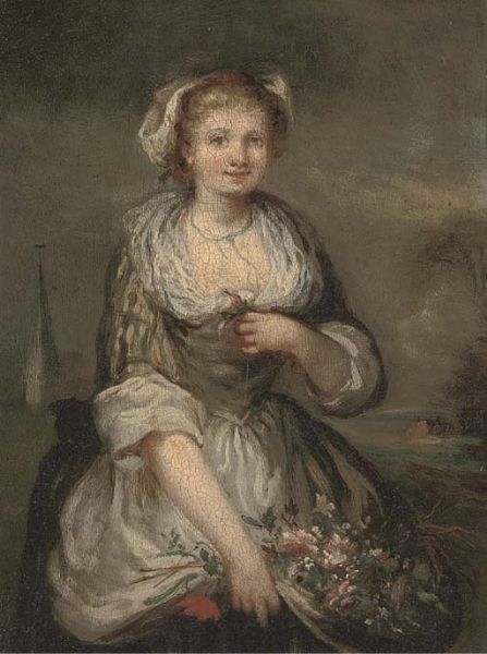 | Portrait of a girl, three-quarter-length, with a bunch of flowers | |