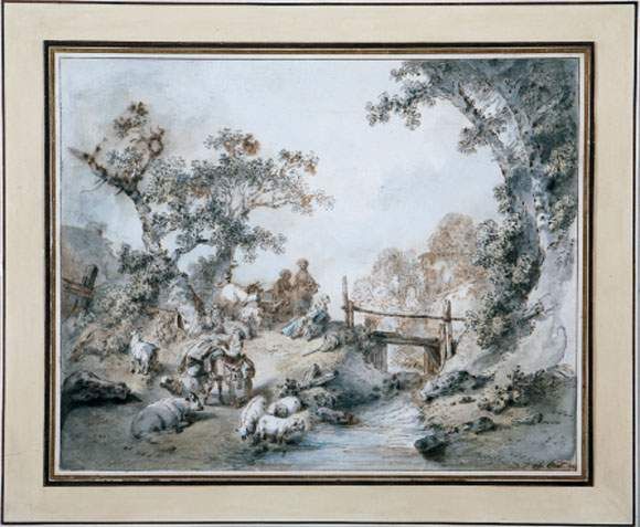 BERGERS ET TROUPEAUX SE REPOSANT PRÈS D'UN RUISSEAU