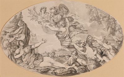 | Mythological scene with Athene accompanied by geniuses | |