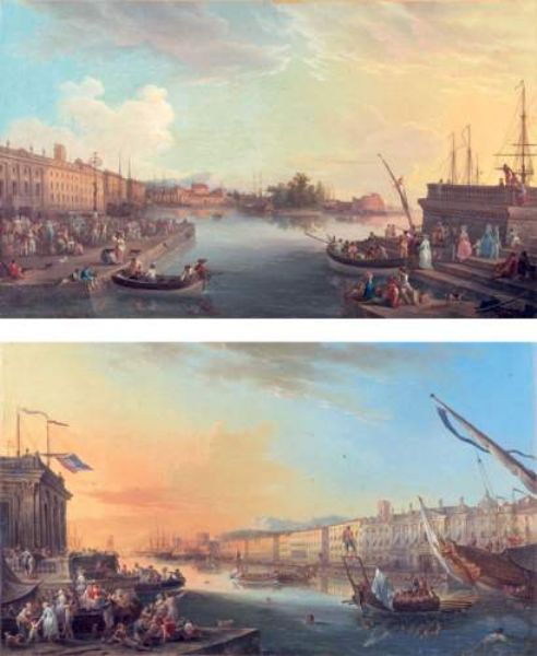 | Vues des quais du port de Toulon animés de nombreux personnages | |