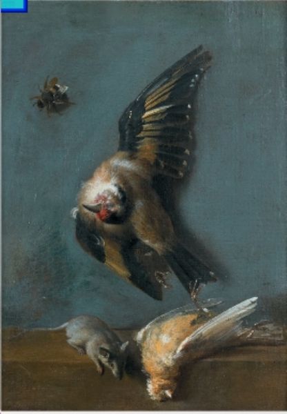 Nature morte aux oiseaux, abeille et musaraigne