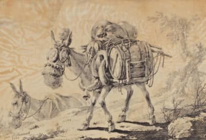 | Deux dessins illustrant la fable de La Fontaine: «les deux mulets» | |