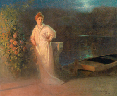 Moonlit Landscape with a Young Lady on the Shore of a Lake