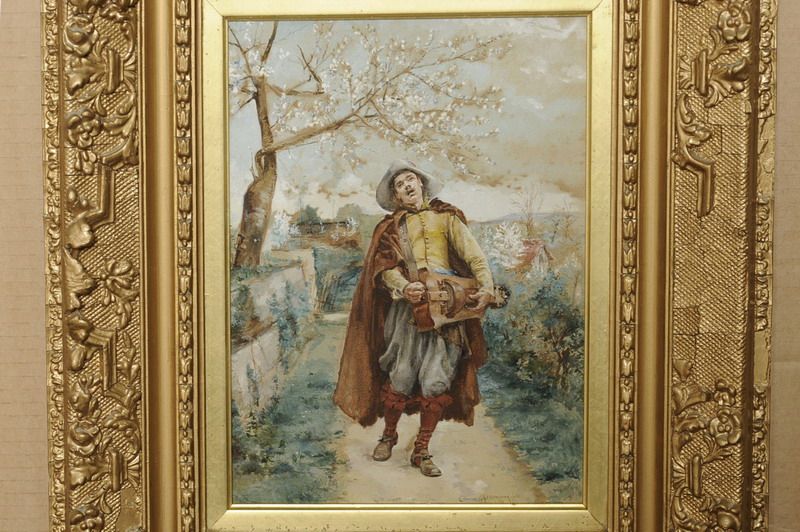 | Man Playing a Hurdy Gurdy on a Country Path | |