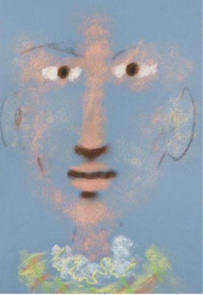 VISAGE D'ARLEQUIN SUR FOND BLEU