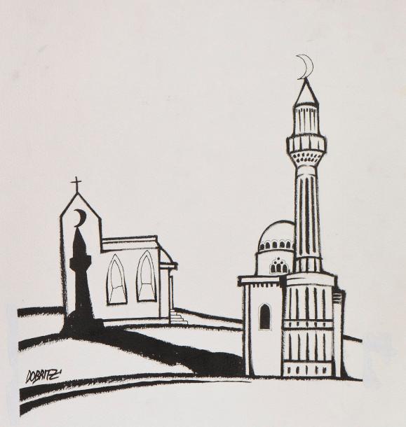 | Église et mosquée, Moutons europééens, Le V de la victoire. | |