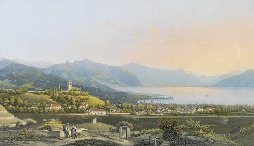 Vevey et le fond du lac. Entrée du Rhône dans le lac de...