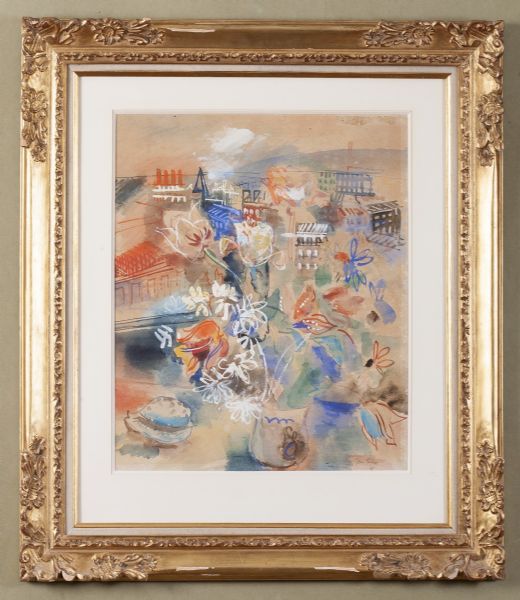 FLOWERS ON A WINDOW SILL, "VUE DES FLEURS SUR UNE FENETRE."