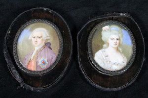 Miniature bust portraits of an 18th Century gentleman and his wife.