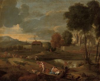 A classical landscape with nymphs and satyrs