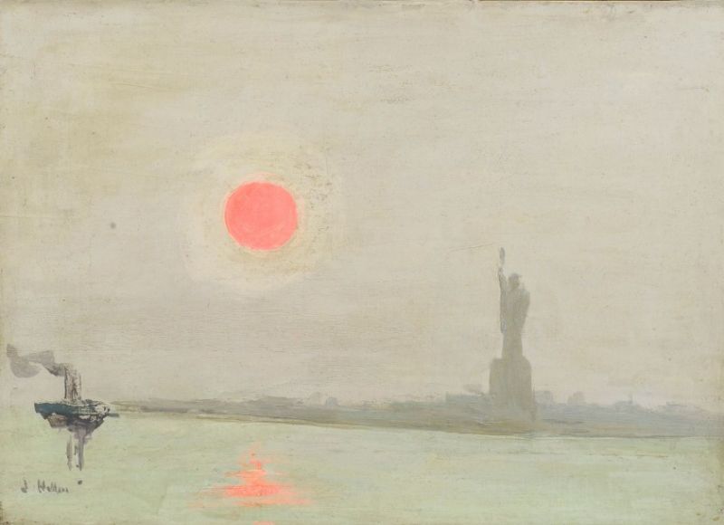 Coucher de soleil avec la statue de la Liberté