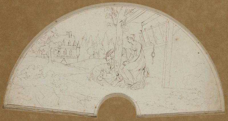Jeune bergère berçant son enfant, projet d'éventail.