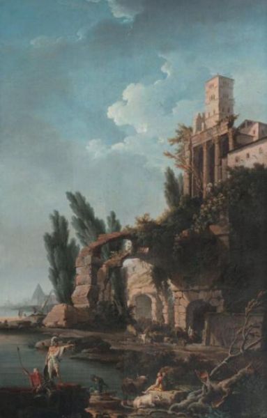 Marine avec soldats au pied de ruines antiques