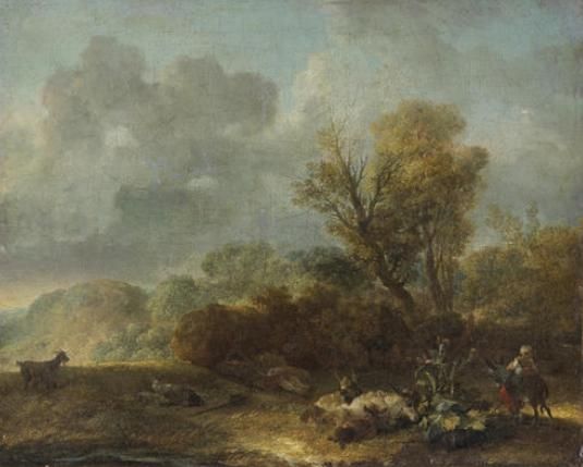 A landscape with figures and donkeys in the foreground