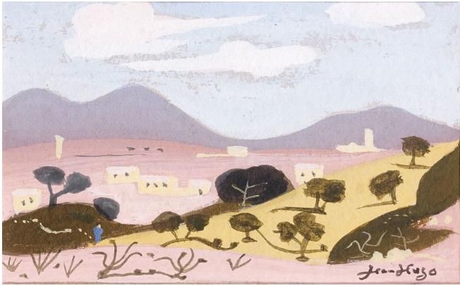 PAYSAGE JAUNE ET ROSE AUX OLIVIERs
