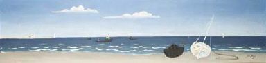 VUE D'UNE PLAGE, DEUX BARQUES ÉCHOUÉES