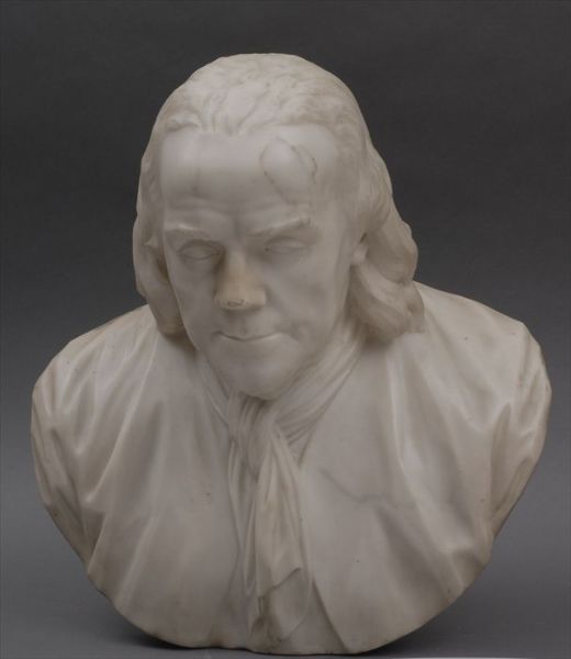 CARVED MARBLE BUST OF BENJAMIN FRANKLIN