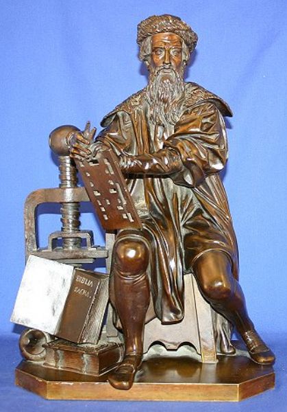 Sculpture of Gutenberg Printing Bibles at his Printing Press