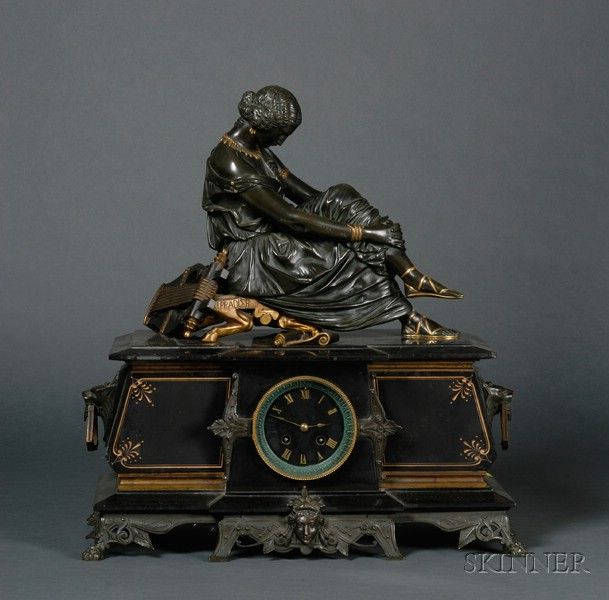 Figural Bronze and Marble Mantel Clock of A Seated Sappho