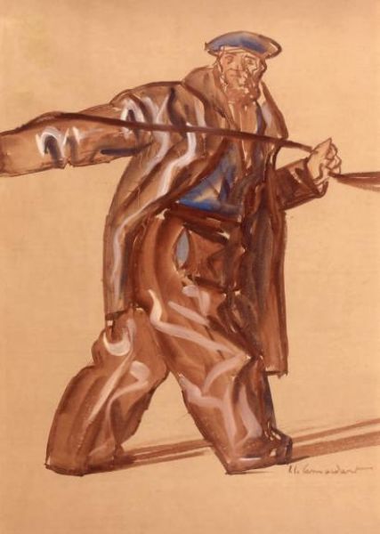 Pêcheur Lavis d'encre brune