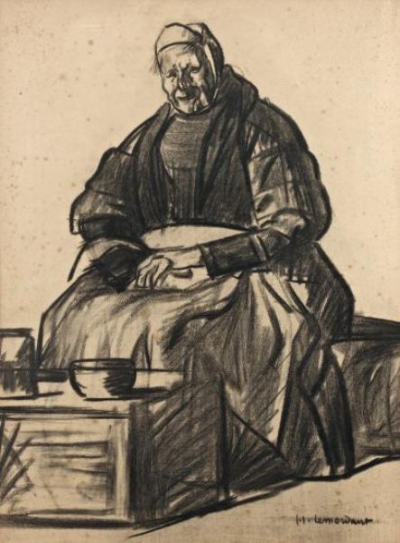 Vieille bigoudène assise