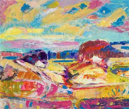 Each depicting a colorful abstract landscape