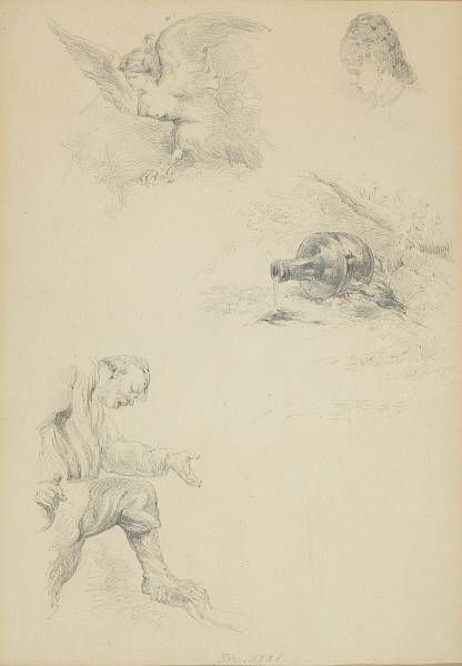 Studies of a Chimera, Woman's Head, Bottle Old Sot