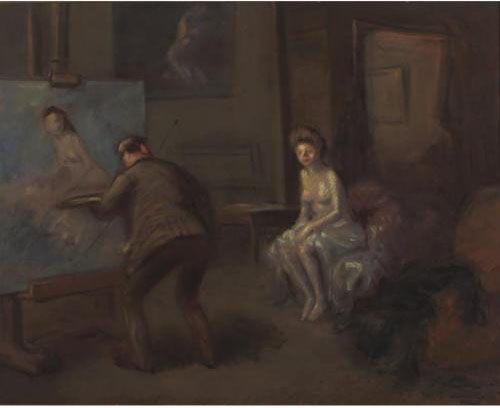 PEINTRE PEIGNANT JEUNE FEMME EN BLANC