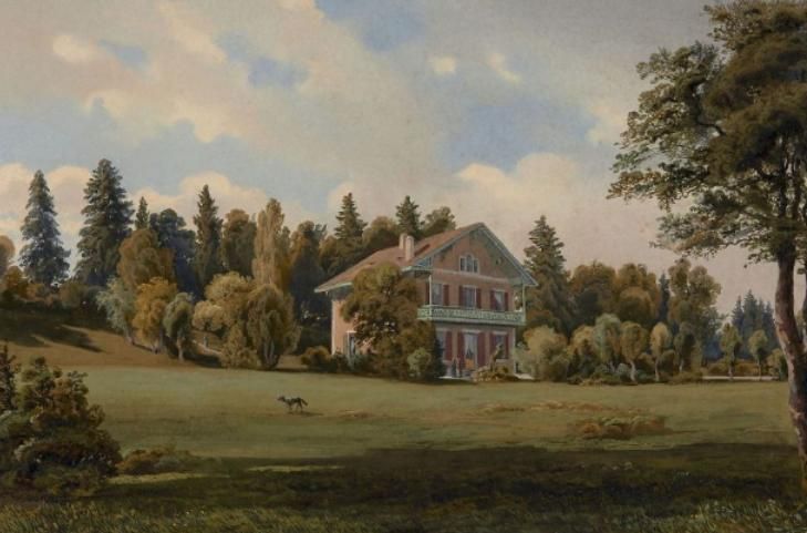 Vue d'une maison de plaisance dans un parc