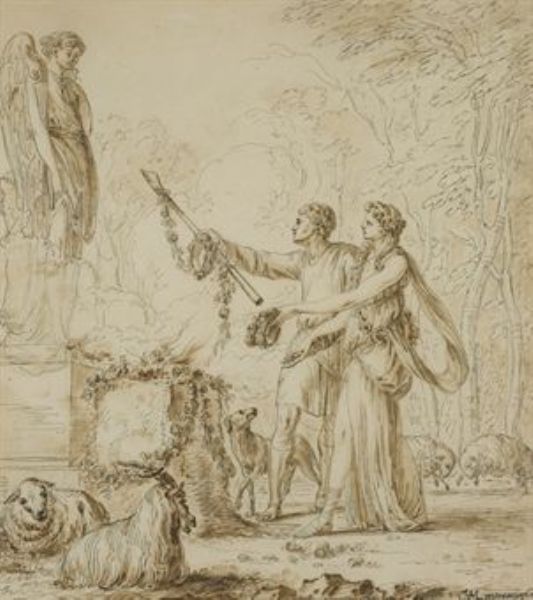 | Couple de bergers déposant des offrandes devant un autel | |