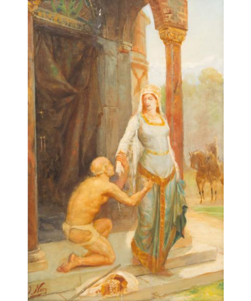 Mendiant baisant la main d’une orientale.