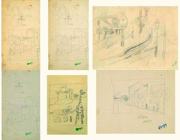 Huit croquis à la mine de plomb.