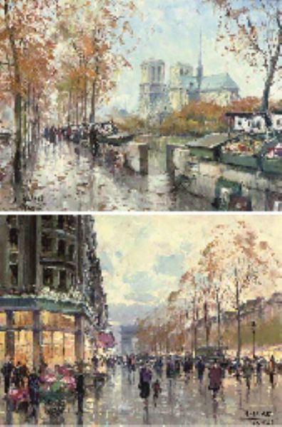 | Book sellers on the banks of the Seine, Notre Dame beyond; and Les Champs Elysèes, Paris | |