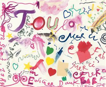 | Gouache wax crayon, pencil, metallic pen, paper and tape collage on paper | |