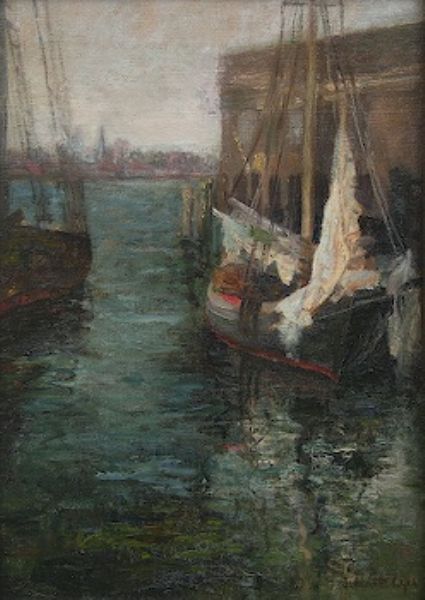 Port Scene with Moored Sailboat
