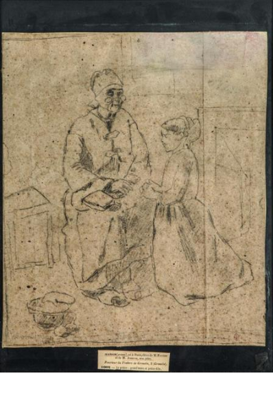 La prière, grand-mère et petite fille.