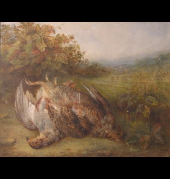 still life, dead partridge in a landscape