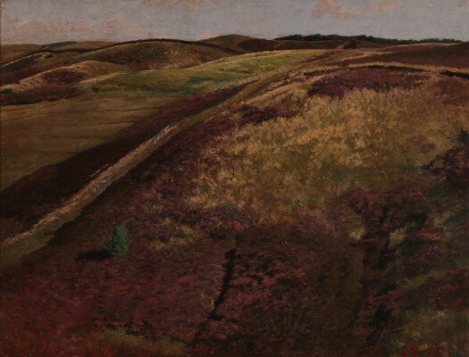 View over a hilly moor. Svanninge Bakker