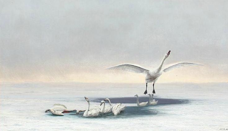 Winter scenery with swans