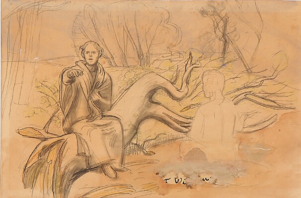 Pencil watercolour and crayon on paper