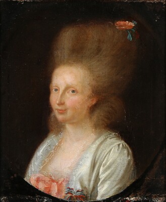| Portrait of a young lady with a pouf and a white silk dress | |