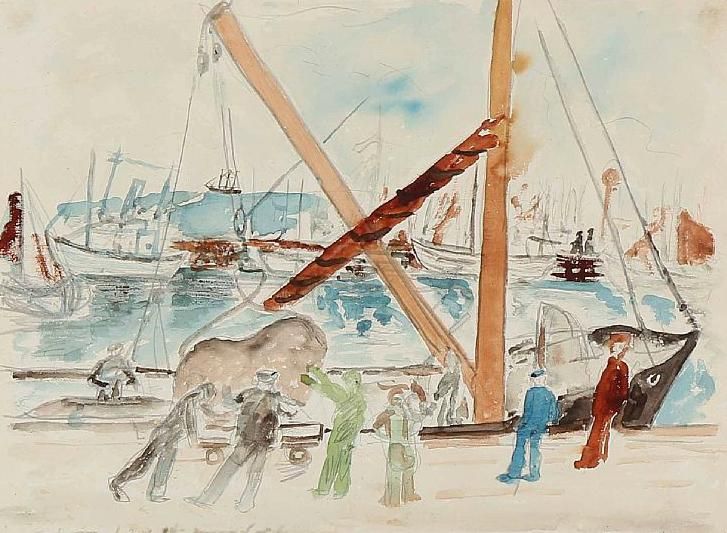 Harbour scene with fishermen